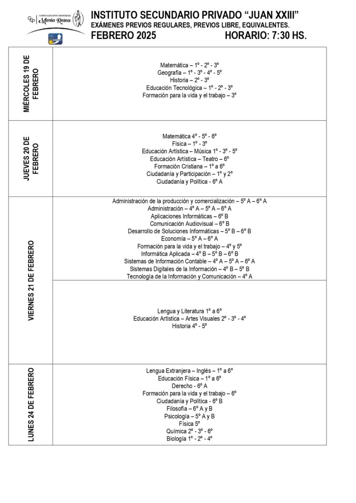 EXÁMENES FEBRERO 2025